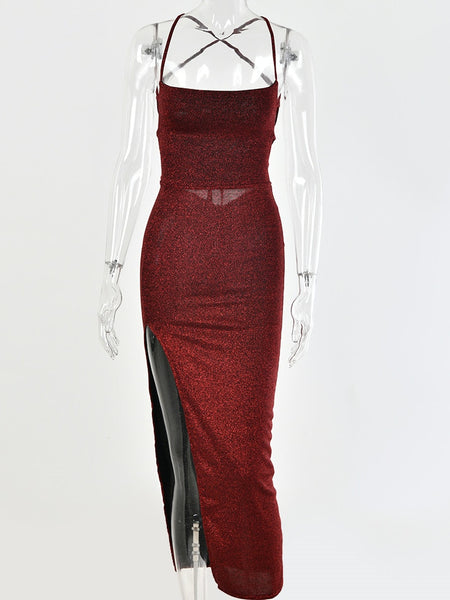 Long Backless Maxi Dress Women Spaghetti Strap High Split Bodycon dress