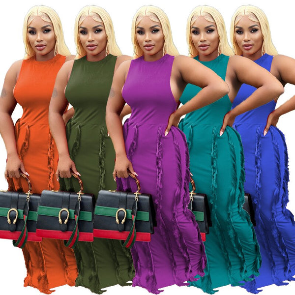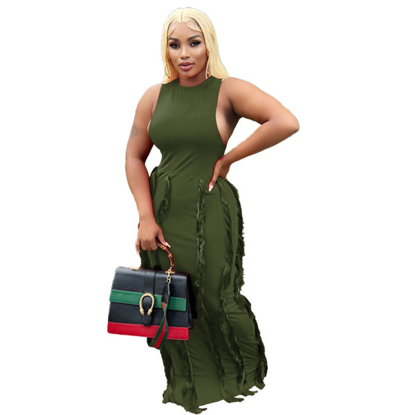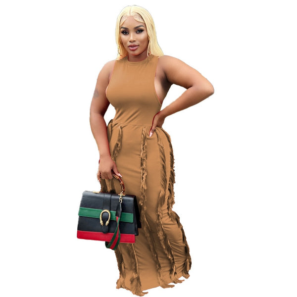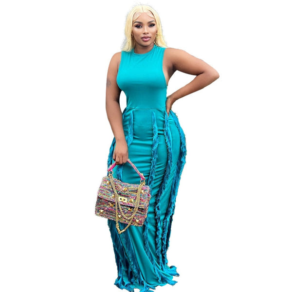 Long Dress Tassel Sleeveless Party Night Dress Streetwear Bodycon Dresses